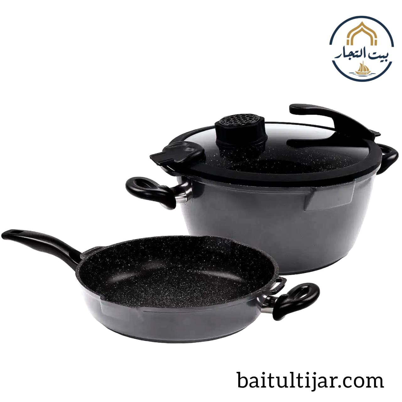 STONELINE Stone-Coated Cookware Set (28 cm Frying Pan + 24 cm Cooking Pot with Glass Lid)